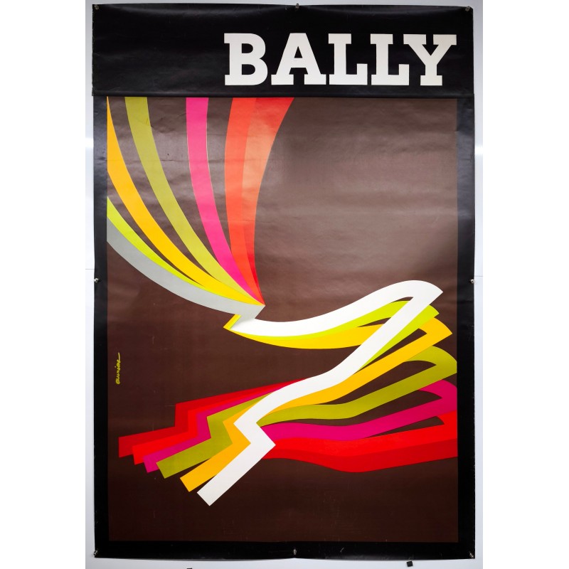 Ce contexte historique rappelle l'importance croissante du design dans le marketing, où une image bien conçue peut influencer les choix des consommateurs et renouveler l'intérêt pour les marques emblématiques telles que Bally. L'affiche, mesurant 116x173, conserve un état B, ce qui témoigne de son passé tout en restant attrayante pour les collectionneurs.