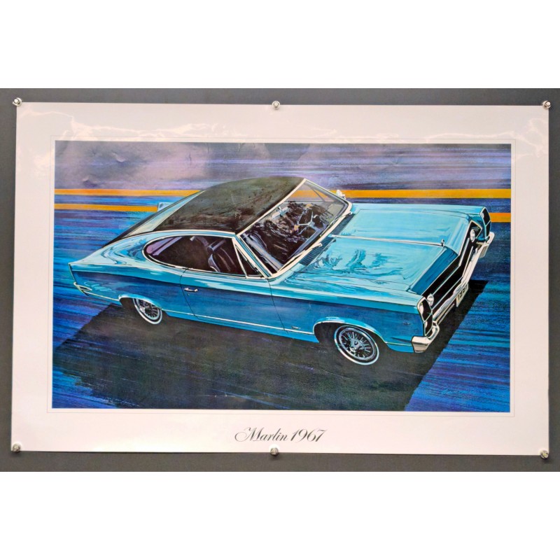 Créée dans un contexte où les voitures devenaient des symboles de statut et de style de vie, cette affiche Marlin 1967 incorpore les valeurs de confiance et de performance caractéristiques de l’ère automobile. L’auteur, Sevier, réussit à fusionner le monde de l'art avec l'univers des véhicules, offrant ainsi une vision unique qui séduira les collectionneurs d'objets vintage et les amateurs d'art.