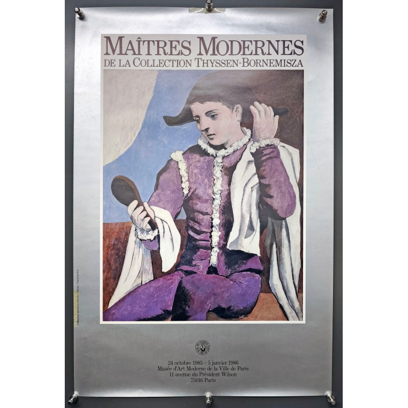 Cette affiche originale Picasso Maitres Modernes de la collection Thyssen Bornemisza 1986 de Picasso en 1986 est une illustration fascinante qui promeut une exposition d'art emblématique. Réalisée par l'imprimeur Fantinigrafica, elle a été conçue pour célébrer l'art moderne à travers une collection remarquable, présentée au Musée d'Art Moderne de la Ville de Paris.