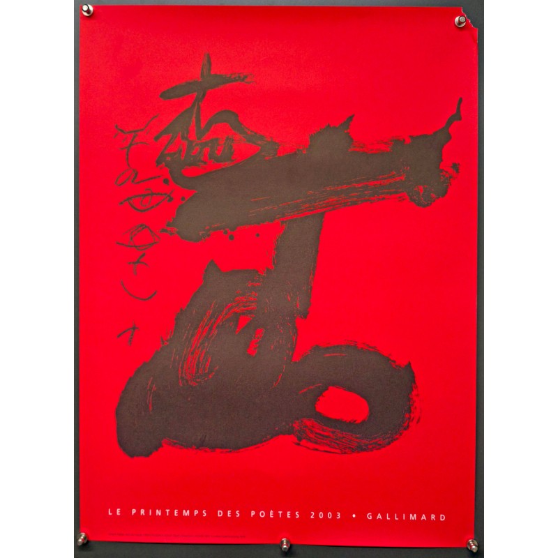 Cette affiche originale Antoni Tapies Noir sur Rouge Le Printemps des Poètes 2003 Gallimard de Antoni Tapies en 2003 est une pièce maîtresse qui témoigne de l’union entre art visuel et poésie, capturant l’essence même de la célébration littéraire annuelle en France. Connue pour sa simplicité dynamique, elle fait la promotion du Printemps des Poètes, un événement qui met en avant la poésie et son impact dans la culture contemporaine.
