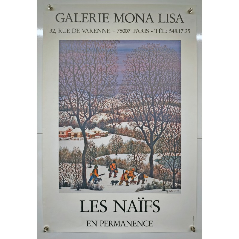 Cette affiche originale Petrovic Les Naïfs en Permanence Galerie Mona Lisa 1975 de Petrovic en 1975 est un véritable hommage à l'art naïf, qui célèbre des représentations simples et sincères du quotidien. Impressionnée par Junes et Fils, cette œuvre est destinée à promouvoir l'exposition permanente des œuvres naïves à la célèbre galerie, reconnue pour sa valorisation de l'art accessible.