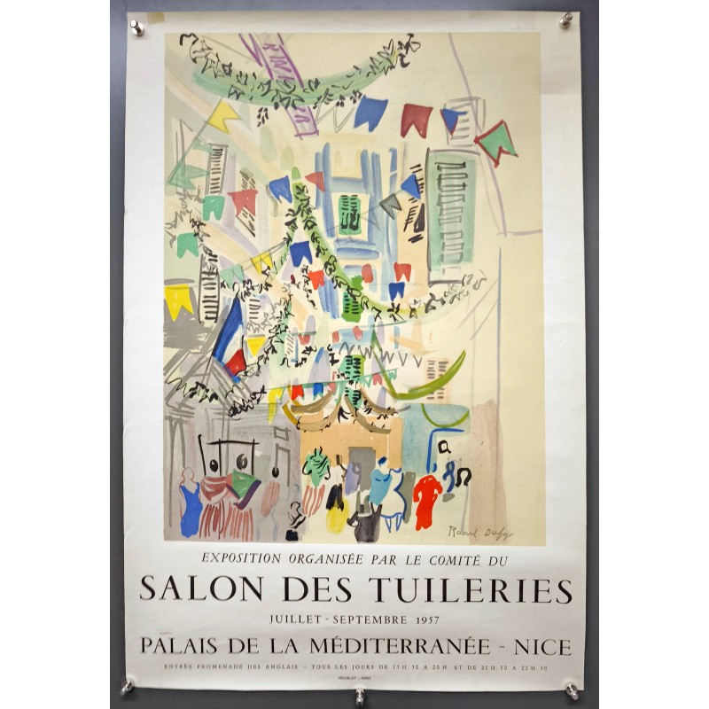 Cette affiche originale Raoul Dufy Salon des Tuilleries Palais de la Méditerrannée 1957 de Raoul Dufy en 1957 est une véritable œuvre d’art au caractère historique et culturel. Imprimée par Mourlot, cette lithographie célèbre le Salon des Tuilleries, un événement marquant dans la ville de Nice, promouvant les échanges et les interactions sociales au sein d'un cadre enchanteur.