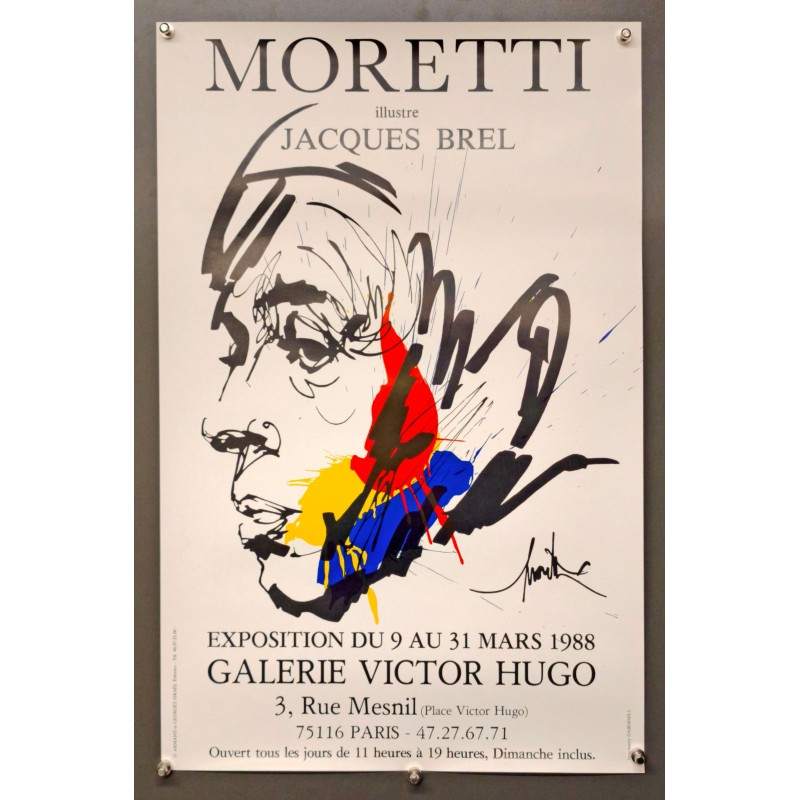 Pour les amateurs d'art et les passionnés de culture, cette affiche originale est un incontournable qui évoque le talent incomparable de Moretti et l'essence de Jacques Brel. N’hésitez pas à enrichir votre collection avec cette œuvre unique qui célèbre un monument de la musique francophone.