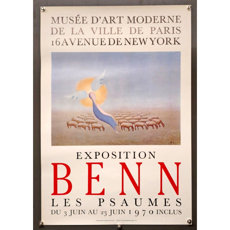 Cette affiche originale Benn Les Pseaumes Musée d'art moderne de la Ville de Paris 1970 de Benn en 1970 est une véritable œuvre d'art. Réalisée pour promouvoir l'exposition des œuvres de l'artiste au Musée d'art moderne de la ville de Paris, elle constitue un témoignage visuel riche et coloré de cette époque. Imprimée par l'Imprimerie Moderne du Lion, cette affiche offre un aperçu fascinant d'une exposition mémorable dédiée à la créativité et à l'expression artistique.