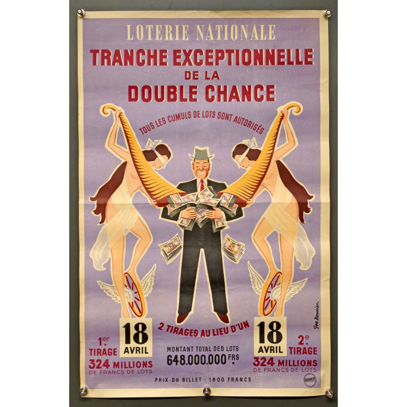 Pour les passionnés d'art et de collection, cette Loterie Nationale Tranche exceptionnelle de la Double Chance Géo Bouvier est un ajout captivant à toute galerie. Ne manquez pas l'opportunité d'acquérir cette pièce unique qui évoque à la fois l'âge d'or des affiches publicitaires et l'attrait irrésistible de la chance.