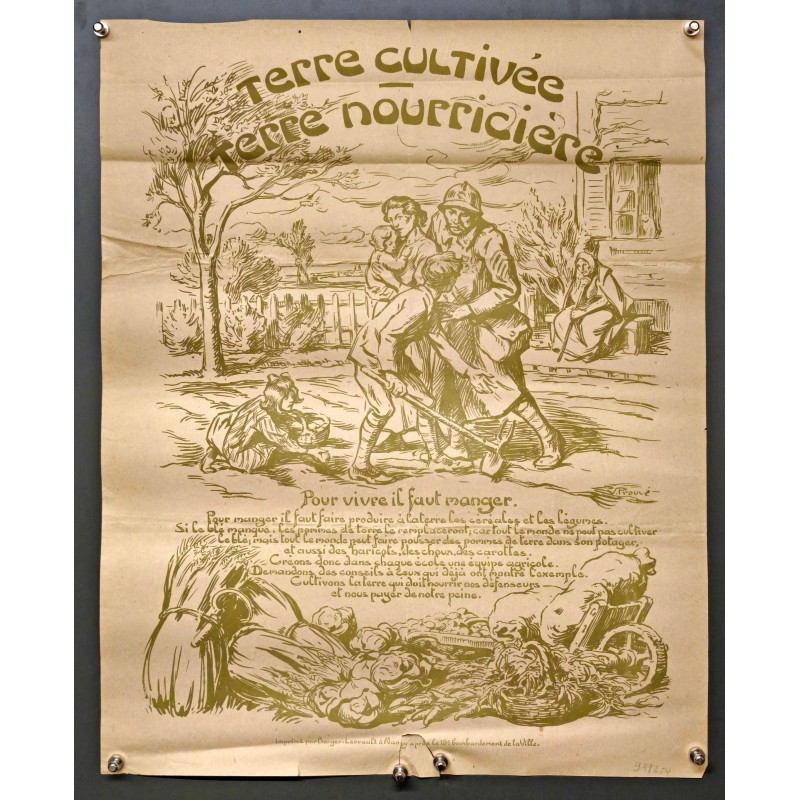 Cette affiche originale Terre Cultivée Terre Nourricière 1918 est bien plus qu'un simple élément décoratif ; elle représente un appel puissant à la responsabilité collective et à l'amour de la terre. Si vous êtes un collectionneur ou un passionné d'art vintage, ne manquez pas l'opportunité de posséder ce morceau précieux d'histoire.