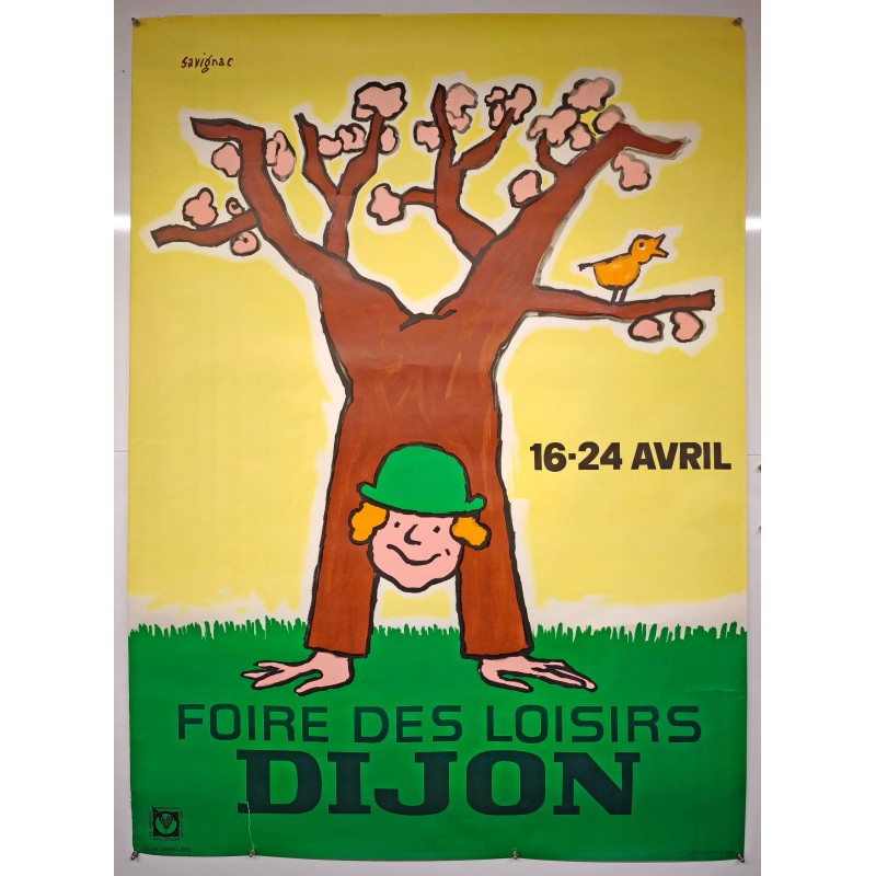 Cette affiche originale Foire des Loisirs Dijon 16 24 Avril de Savignac est un excellent exemple d'art graphique destiné à promouvoir un événement fascinant. Réalisée par l’artiste **Savignac**, cette lithographie attire immédiatement l’attention grâce à son design coloré et ludique. Imprimée par Le Carrousel, elle fait partie de la riche tradition des affiches pour foires et salons, une pratique qui reflète le dynamisme culturel et social des événements de rassemblement.