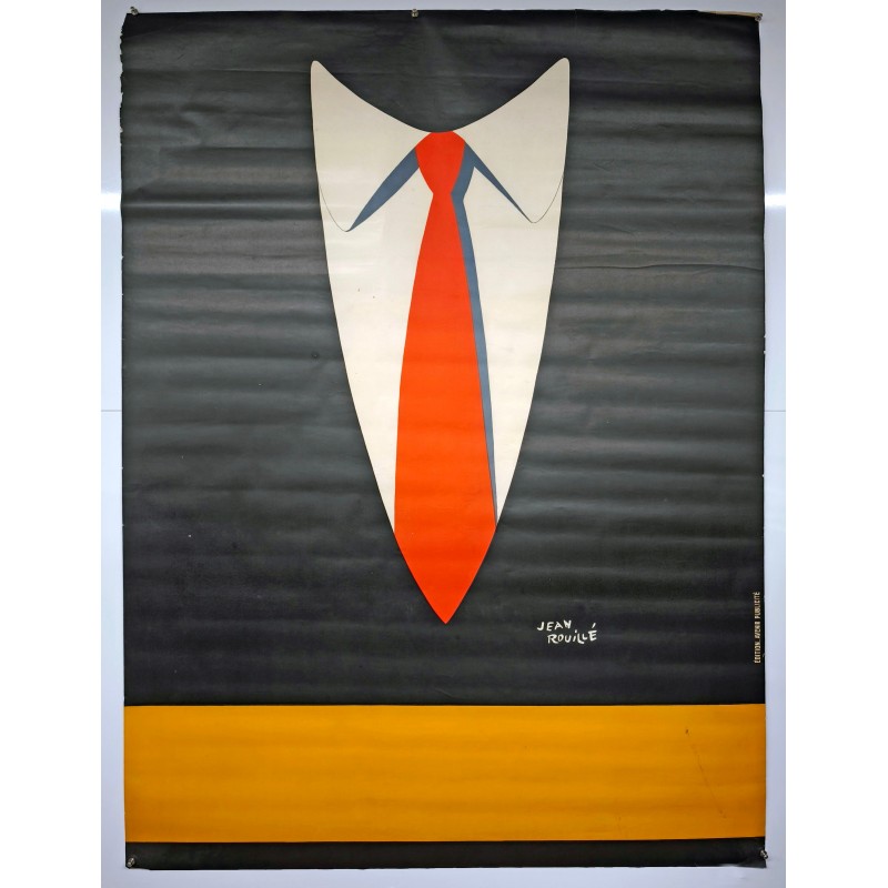Cette affiche originale Costard Cravate Avenir Publicité de Jean Roulié est un témoignage marquant de l'art de la publicité d'époque. Réalisée en lithographie, elle invite à explorer un univers où le style et l'élégance sont mis à l'honneur. Bien que la date précise de cette création reste incertaine, son esthétique résolument moderne évoque une période où le costume et la cravate étaient des incontournables de l'habillement masculin, symbolisant à la fois le raffinement et le professionnalisme.